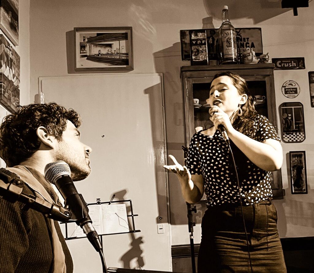Laureles es un proyecto musical y escénico que explora el melodrama tanguero desde una mirada abierta y contemporánea. Concebido como un universo artístico flexible, se presenta en distintos formatos —del clima íntimo del dúo a la potencia del quinteto— e integra elementos performáticos que amplían la experiencia más allá de lo estrictamente musical.